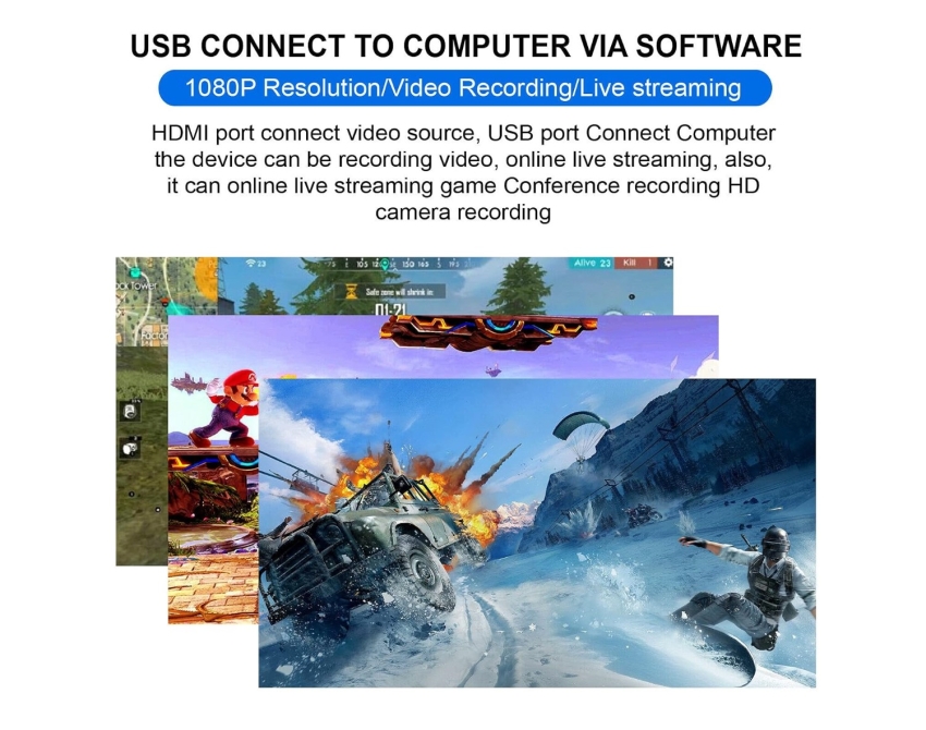 Supports a maximum input resolution of up to 4K. Supports a maximum output resolution of up to 1080P at 60fps. Supports 8/10/12-bit color depth. Supports most acquisition software, such as VLC, OBS, Amcap, etc. Supports Windows, Android, and Mac. Complies with USB UVC video specifications. Complies with USB UAC audio specifications. No external power supply required; compact and portable. HDMI Compatible Resolution: Supports a maximum input of 1080P. Video Input Format: 8/10/12-bit color depth. Video Output Mode: YUV, JPEG. Video Output Resolution: 1080P. Audio Format Support: L-PCM. Input Cable Length: ≤ 15 meters; standard HDMI AWG26 compatible cable. Maximum Operating Current: 0.4A/5VDC |