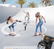 Multimodal AI Tracker Detachable Touchscreen Remote Built-in Extension Pole and Tripod 360° Infinite Pan Tracking Robust 3-Axis Stabilisation Foldable & Compact Design |