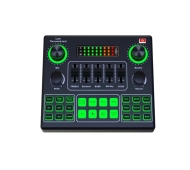 -12live effects, 12 electronic music effects, 14 pre-heating sound effects, the live sound card supports the elimination of origin sound,male voice, female voice, baby voice and a variety of voices.