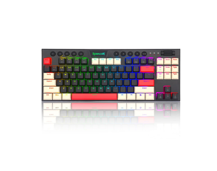 Bluetooth/2.4Ghz/Wired Tri-Mode Ultra-Thin Low Profile TKL Gaming Keyboard Redragon Low Profile Blue Switches 30% Cutted Ultra-Thin with Dedicated Media Control Professional Software RGB Backlit |